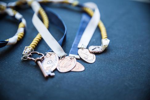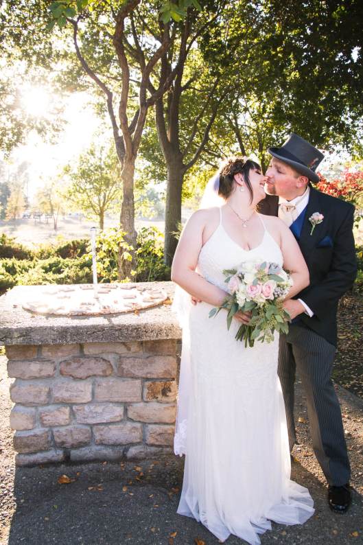 For their ceremony, they had a close friend officiate their wedding (in an amazing top hat!) and included a hand fasting ceremony with ribbons that they had braided themselves. Their reception was right next to their ceremony in a room decorated with drapes and chandeliers! Perfect for the fairy tale mood they were incorporating into their wedding!