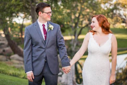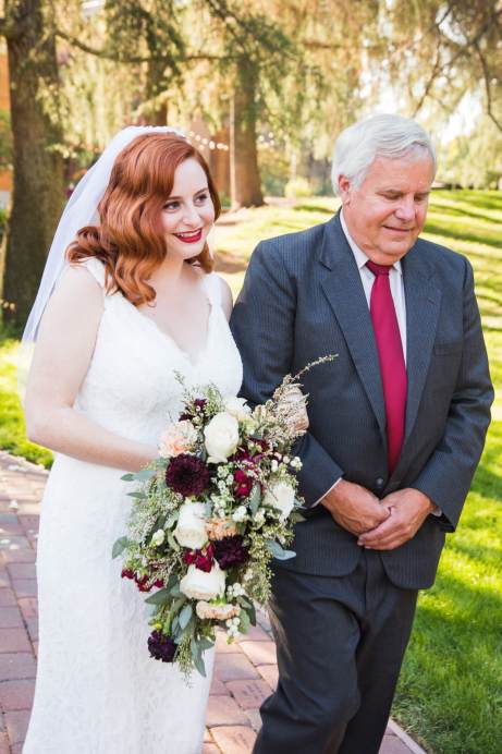 These two are seriously the cutest! It was a perfect September day for their wedding at the Pleasant Hill Community Center. These two combined their love of musical theatre and music with fun details! Instead of tossing rice after the ceremony ended, they made sheet music cups that held rose petals that the guests could throw! Such a cute idea! For their program, they created Broadway inspired playbills and their guest book was a guitar that their guests could sign. But that’s not all… their bridesmaids surprised them by singing their toast! And they had the audience in stitches! Later in the night, Brian and Lisa performed a duet together with Brian on guitar and both of them singing. It was a swinging good time!