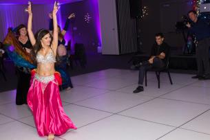 They had tons of performances woven into their reception. While dinner was served, a family friend and Frank Sinatra impersonator crooned jazzy tunes, meanwhile an artist decorated hats and clothes to commemorate their wedding. Most of their wedding guests were also in the entertainment industry and danced and sang and totally rocked out on the dance floor. Not to be outdone, Stina and Anthony took to the floor not only for an elaborately choreographed first dance. Later in the evening, Stina surprised Anthony with a special belly dance, HE joined in and sang to her while she danced!
