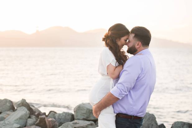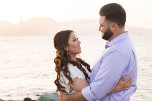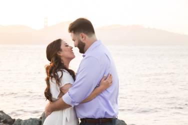As soon as we started Elise and Scott’s session, I knew it was going to be one of my favorites! They are so sweet together and are filled with so much laughter and fun. A few minutes into their session, the crowds began to disperse and the sunset turned everything golden. It was perfect timing for the session! It was also one of the rare days in San Francisco that was not foggy and we were able to head across the street to Crissy Field and get images with the sun setting over the Golden Gate bridge!