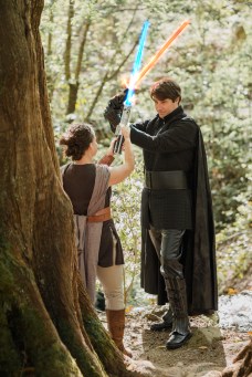 The second half of their session was really fun too because they brought a few costumes. For those of you that don’t know my story, I am a big theatre person and I LOVE costumes and whimsy! So when Colleen and Brian pulled out Star Wars costumes, I was so there for it! They are Star Wars fans and even went as Rey & Kylo Ren for Halloween. They are both professors and last Halloween, Colleen even stopped by Brian’s class while the two of them were dressed in costume and gave a guest lecture!