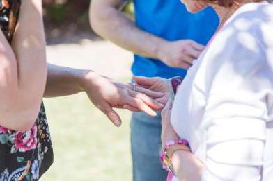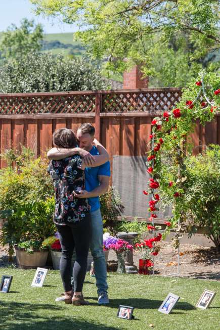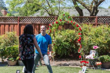 Since Joe & Laura were coming to visit Joe’s parents for the holiday, his sister and I helped him decorate and set up the backyard so that he could surprise Laura. A few days before the proposal, we dashed around town picking up vines and flowers and then decorated the arch before Joe and Laura arrived for the weekend.