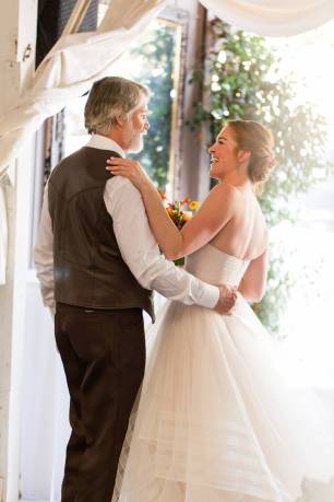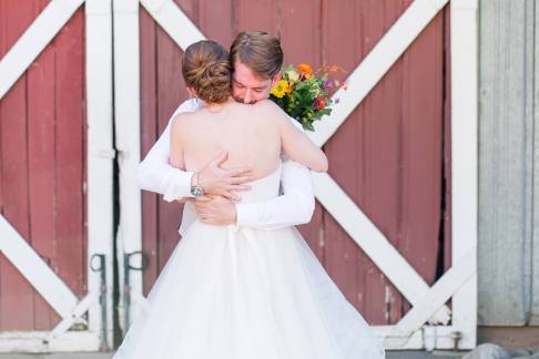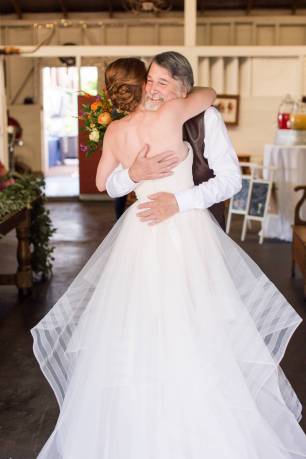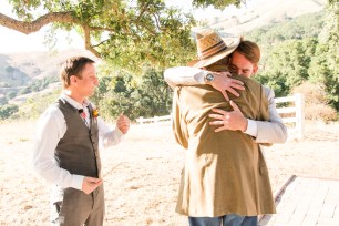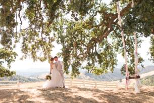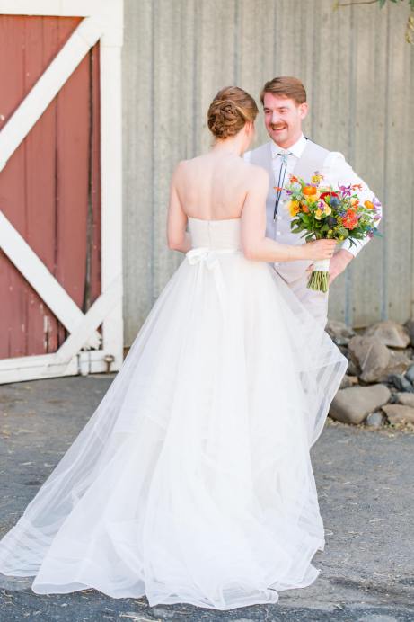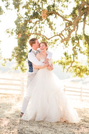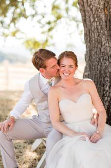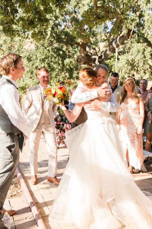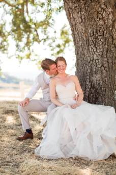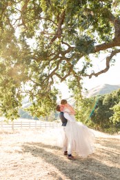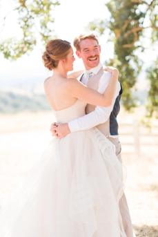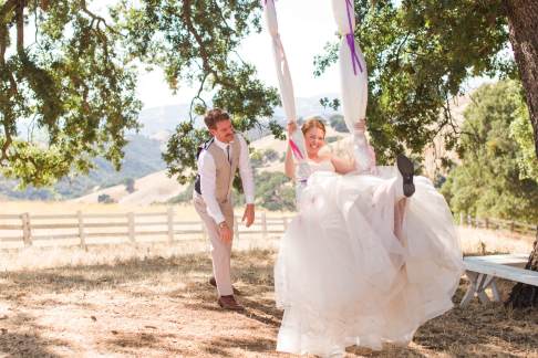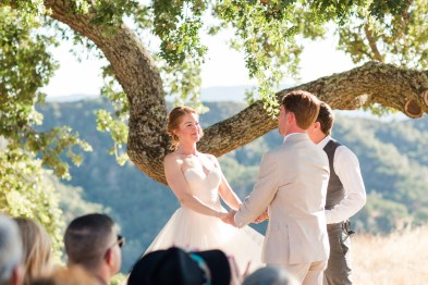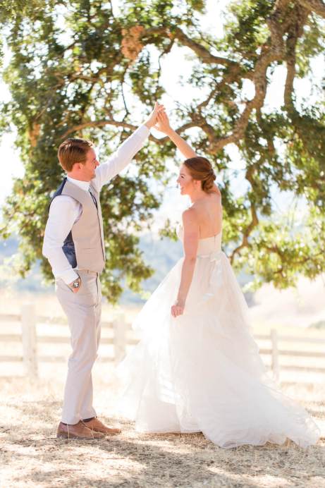They started the day off with by sharing a first look in front of rustic barn doors, sharing a special moment together before their guests arrived. Janelle also had a first look with her dad- which was so sweet! After their first look, we went down to their ceremony area where there was a romantic rope swing under another oak tree. There was something so magical about the golden grasses of the hills and the trees and of course, these two were such a blast!