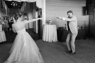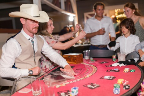 The ceremony followed shortly after and it was a sweet and intimate moment during the day which was a fun complement to the party that followed. They kicked off the reception with their first dance and ringing of the dinner bell. The rest of the night was filled with dancing and good times. One thing that we loved was their casino that opened part of the way through the night. Guests could play and if they lost, that money went to the couple. It was a really fun take on traditions like the money dance and such a fun activity for the guests! Guests were also treated to whiskey tasting, pool tables, a dessert bar and even late-night tacos!