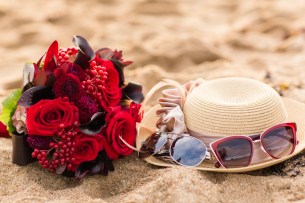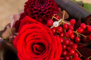 For their session, they brought a few really fun props that were a blast to work with! Holly did a trial with her florist and brought along a stunning crimson and black bouquet. It was the perfect compliment to her ensemble of a navy blue dress with red shoes and red lipstick. What a knockout look! I totally love it! They also brought along fun sunglasses, statement jewelry (which I am obsessed with!!) and a cute hat!