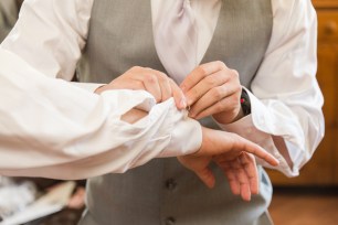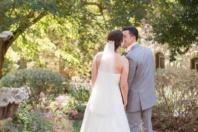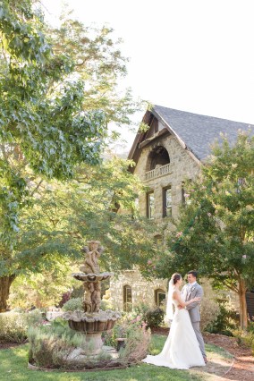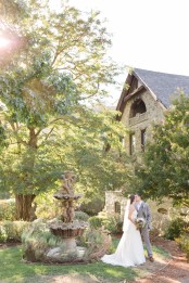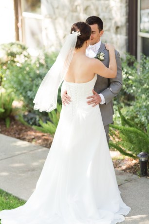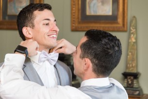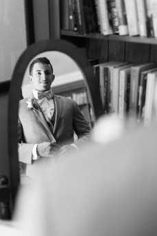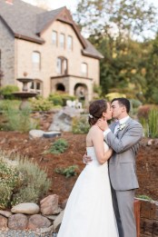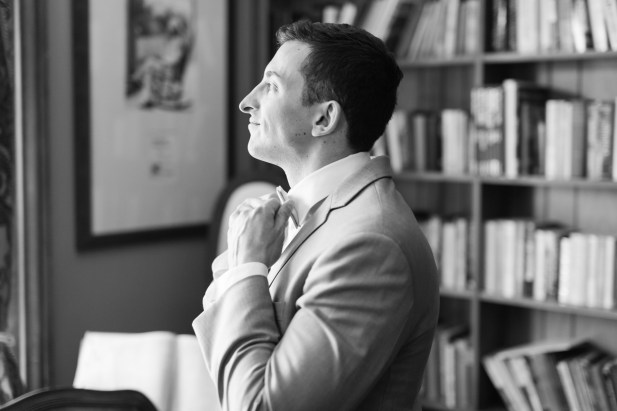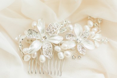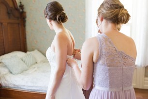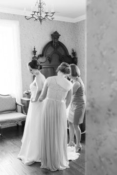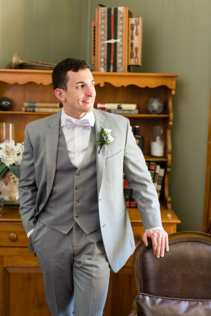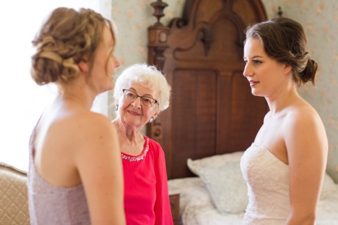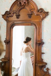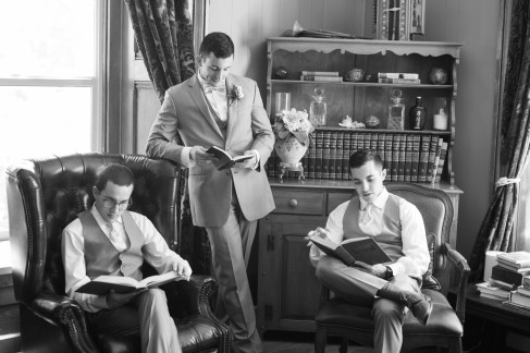Their wedding began by getting ready in the mansion on the property. While Samantha put the finishing touches on her bridal look, Brian was downstairs with his brother and his soon to be brother in law in the library. It was such a fun getting ready room for the guys with lots of old books and vintage furniture that made the perfect backdrop for a classic grooms portrait! Back upstairs, Samantha’s mom, grandmother, and sister were helping her into her gown and jewelry. It was a really sweet way to include the family and made for some lovely moments between all the ladies! Samantha had absolutely flawless accessories especially her sparkly hair comb and diamond earrings.