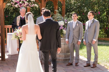Once both the bride and groom were ready it was time for their first look! It was wonderful that they did a first look before their ceremony because we had plenty of portrait time with them to get lots of different looks as well as bridal party portraits and some family portraits. One of my favorite moments of their day was their ceremony right before sunset. It was the perfect blend of sweet and intimate with lots of romantic moments. Samantha and the rest of the bridal party walked down the aisle to live acoustic guitar music. It was so beautiful to see Brian’s big smile as she walked towards him.