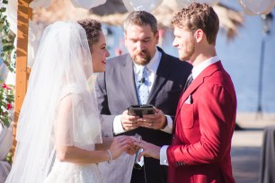 Shelly and Liam incorporated their love for all things Disney throughout their wedding. Both Shelly and Liam looked as if they were straight out of a fairy tale with their outfits. Shelly looked like Cinderella in her sparkly ball gown and Liam absolutely crushed it in his crimson suit. They incorporated Disney on each of their reception tables which had different centerpieces that highlighted Disney movies. They had several spots throughout their wedding that were nods to Disney movies such as their bar and cabana that was a tribute to “Pirates of the Carribean” and the hookah tent that was something straight out of “Alice in Wonderland.” They also had several hidden Mickeys throughout their details like Shelly’s bouquet and in wedding favor keys. For their ceremony, they had two singers perform “I See the Light” from the movie “Tangled.” There were so many more Disney touches throughout the wedding and it was the perfect celebration of the two of them and their Disney love.