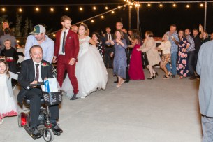 You would never guess that this wedding happened in the middle of a power outage. Thank goodness we had advance warning of the power shutoffs to help prevent the wildfires because Shelly and Liam were able to arrange for generators ahead of time. The power was completely cut at the start of their reception but they were able to plug in the generators and keep the lights on and the party going. With 350 guests, it was a non-stop party all night! There was even a conga line led by the father of the bride.