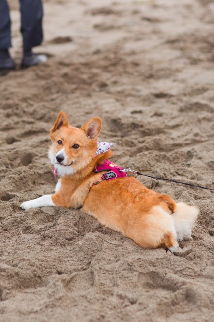 This session felt like something straight out of the movies! Anna and Sean tied the knot back in 2019 and since then, they have added the cutest little floof to their family in the form of their corgi, Princess Buttercup. They both have been longing to get a corgi to add to their family and were over the moon when they adopted Buttercup. She is seriously adorable and just turned one. It was her first trip to the beach and I’m not sure who had more fun, her or the four of us.