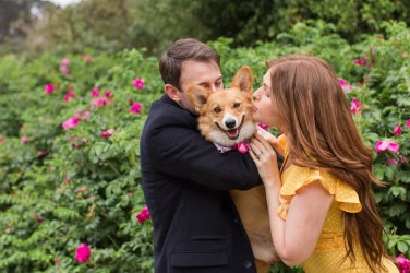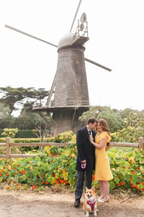 We spent such a fun afternoon with the three of them at Ocean Beach and the Dutch Windmill in San Francisco. The entire session was like something out of a Rom-Com set somewhere in Europe. We had the best time coming up with fun titles for what their romantic comedy would be. Sean was a whiz at thinking up hilarious names. My favorites were: Corgilly Invited, No Bones About It and Floofs Rush In.