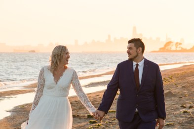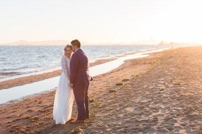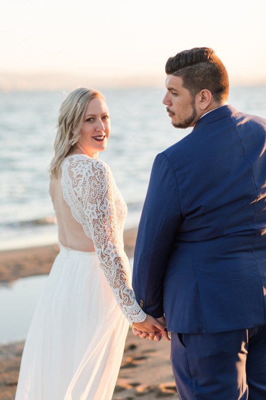The whole world was practically glowing for these two during their anniversary portraits. The bay was gorgeous and clear without any fog or a cloud in sight. They chose Alameda for their portraits because that was where they were originally supposed to have their wedding. This was such a fun shoot because it was a bit of a blend of wedding portraits and a fun lifestyle shoot at Almanac Brewery. We’re so happy for the two of them. And even though this was not what they had originally planned, it was still a beautiful day and we loved capturing their special wedding anniversary.