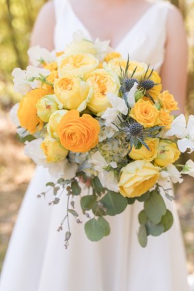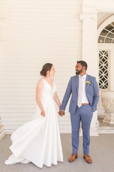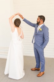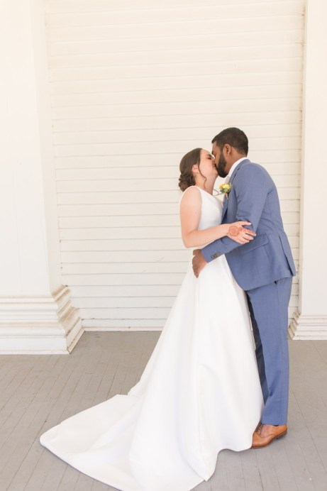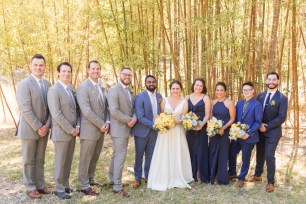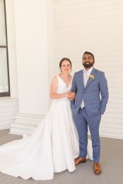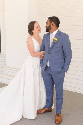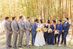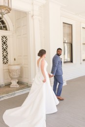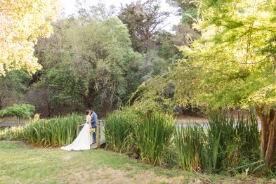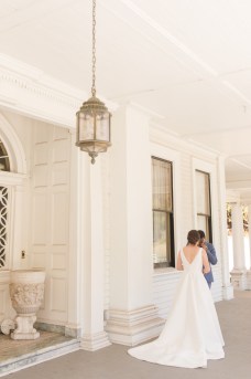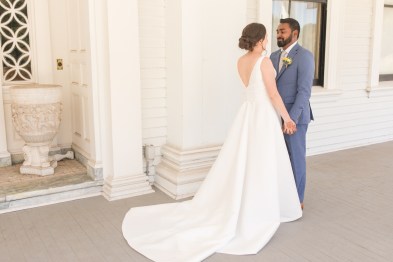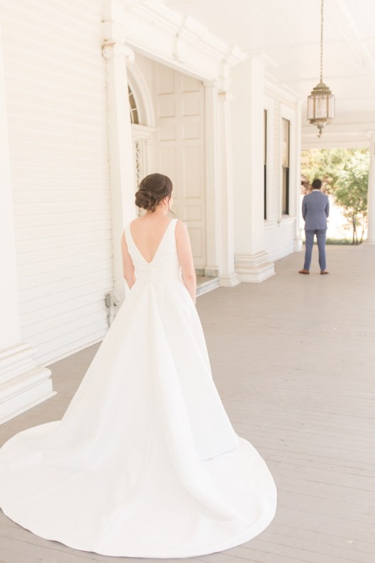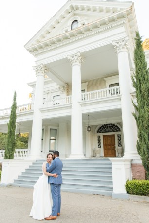 Their wedding day started with a romantic first look on the front porch of the historic estate on the property, followed by a ceremony under a grove of trees. After the ceremony, they and their guests danced the night away under the stars. Instead of a cake, they opted for fresh donuts where each person could pick their own toppings. It was so special that they made their wedding totally their own and a reflection of their personalities and their story!