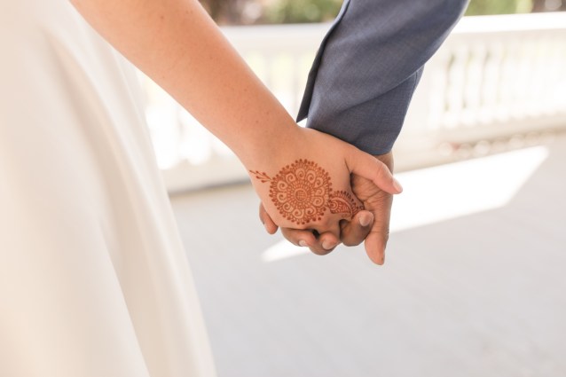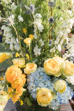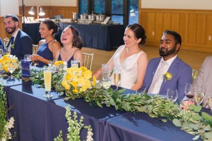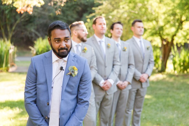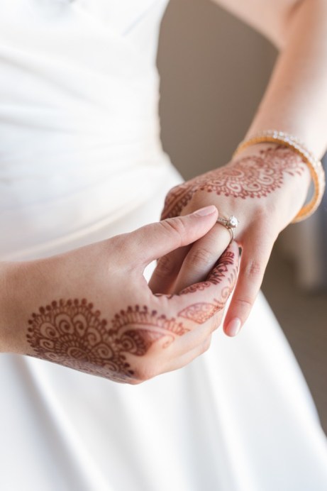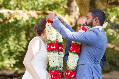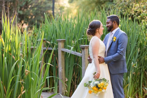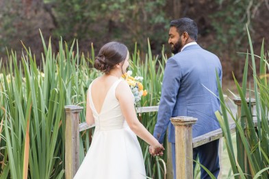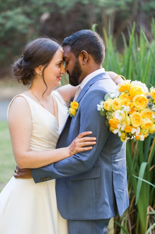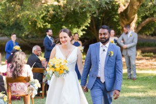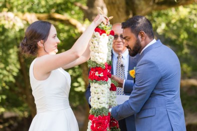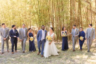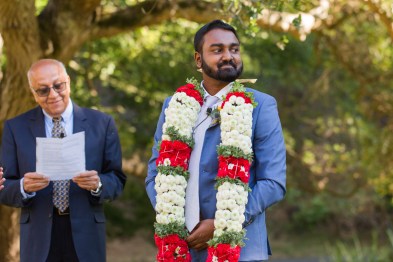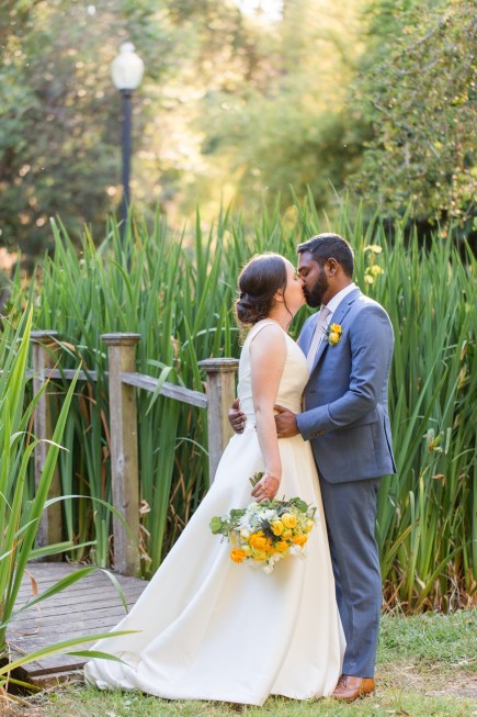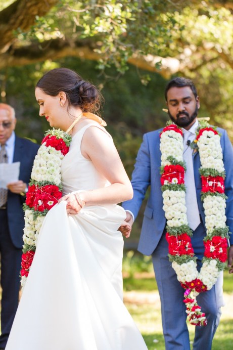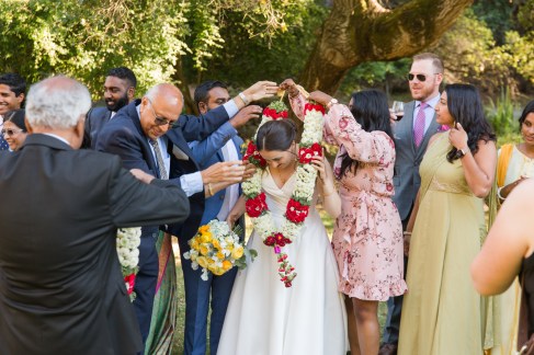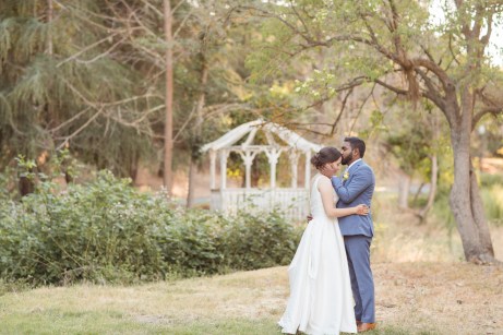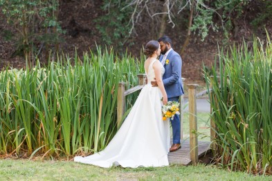 This sweet garden wedding was a reflection of their life together. All throughout their wedding, there were so many special details that told their love story. Their colors of blues and gold reflected their meeting at UC Berekely through the Cal marching band, and their tables were named after all the places that they had traveled together and they blended a mix of western and Indian wedding traditions for a totally unique wedding day. Their ceremony had western traditions such as the exchange of rings, vows and I do’s and they also had Indian traditions of exchanging garlands, walking together and taking the seven vows, and Raj adorning Alyssa with a thali necklace.