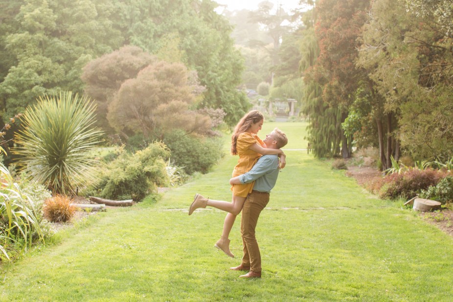 This was such a special engagement session! After a surprise proposal to his high school sweetheart, Theo knew that he wanted a really amazing spot for their engagement session. Since they both share a love of plants, they decided to have their session somewhere with lots of flowers and some epic redwood trees. They picked out the SF Botanical Gardens which was the perfect spot for the two of them.