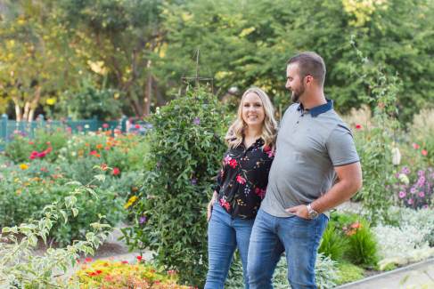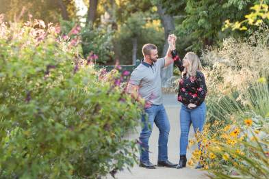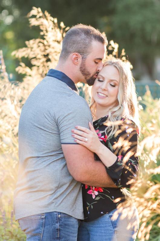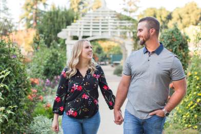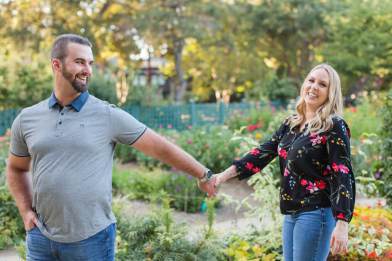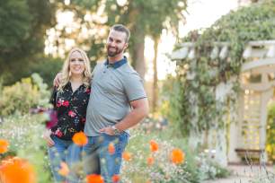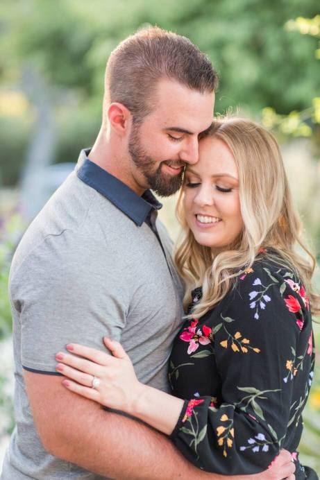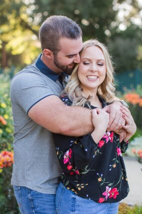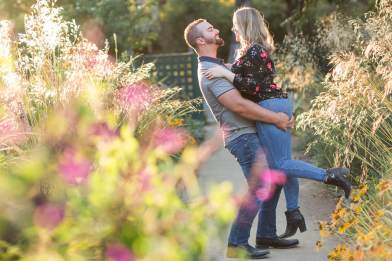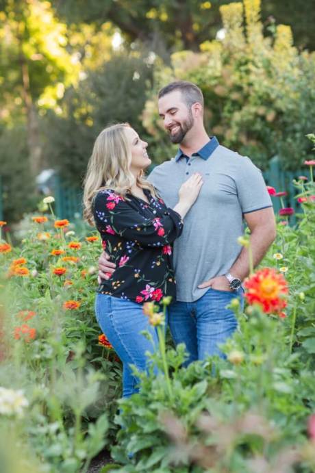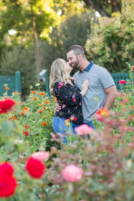 Lisa’s shirt picked up on all the different colors of all the roses and zinnias. Her engagement ring sparkled in the glow of the sun. It was extra special because they had selected her engagement ring together and had her mother’s diamond set in the middle.